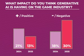 - The 2025 GDC survey revealed significant industry-wide layoffs in 2024, w/ 1 in 11 game developers losing their jobs. The survey, conducted in Oct., highlighted that 41% of developers felt the impact of these layoffs, w/ 29% seeing direct colleagues let go and 4% experiencing studio closures. Additionally, 58% of developers expressed concerns about job security (Venturebeat)