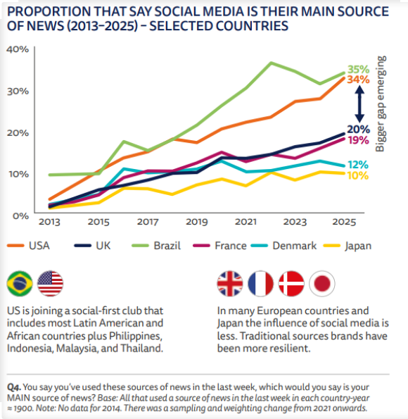 - Social media is now the MAIN news source for 35% of Brazilians and 34% of Americans