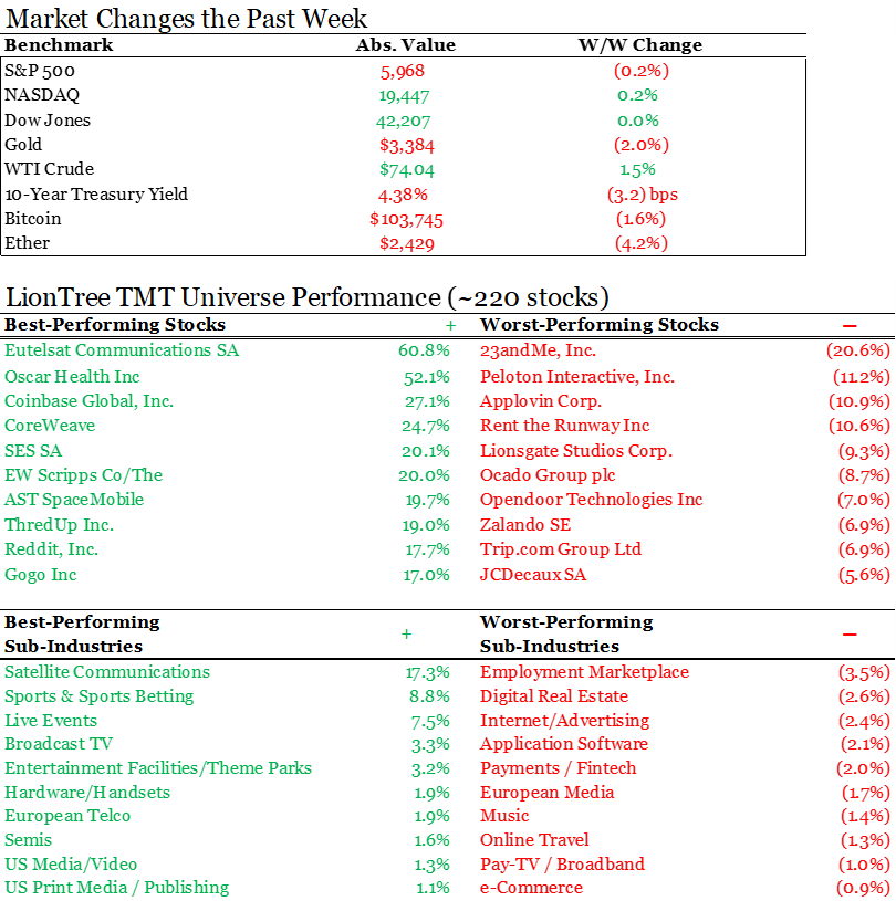 - EchoStar shares surged ~48% after reports that Trump urged FCC Chair Carr & EchoStar Chair Ergen to resolve a dispute over 5G spectrum licenses. Carr warned Ergen to sell spectrum or risk revocation. Trump met Ergen, then summoned Carr, pushing for a deal to avoid EchoStar bankruptcy. Analysts say Trump’s intervention may delay FCC action & boost EchoStar’s chances for license extensions. (Light Reading)