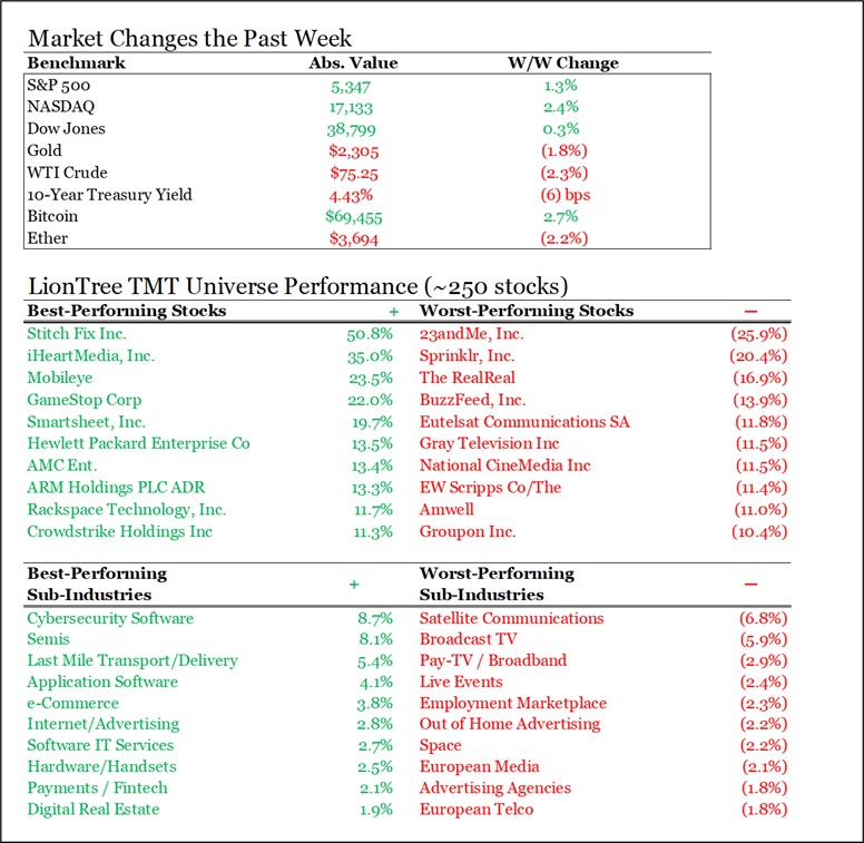 It was yet another positive week, with the S&P 500 and Nasdaq trading up for 6 of the past 7 weeks and both setting new record highs (the S&P 500 rallied +1.3% and Nasdaq rose +2.4%). But market concentration remains high, and the equal-weight S&P 500 was actually down for the week, per FactSet. The big macro update was the jobs report on Friday, which was much hotter than expected, and all ears will be on comments from the Fed meeting next Wednesday.