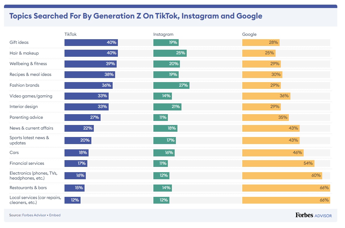 - BUT only 64% of Generation Z do the same, indicating a 30% decrease vs to the 94% of Baby Boomers who use traditional search methods