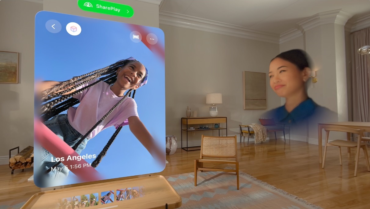 - Spatial photos will enable users to revisit past memories: visionOS uses advanced machine learning to create spatial photos directly from users’ libraries in the Photos app; Users can share spatial photos w/ others to view on Vision Pro or use SharePlay to view moments via their spatial personals in the same virtual room