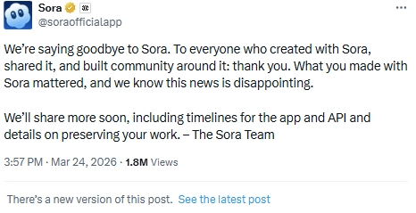- OpenAI gave no indication it was working to wind down Sora: The Co published a blog post just a day before the announcement titled “Creating with Sora safely”, outlining ways it’s been working to make the app safer