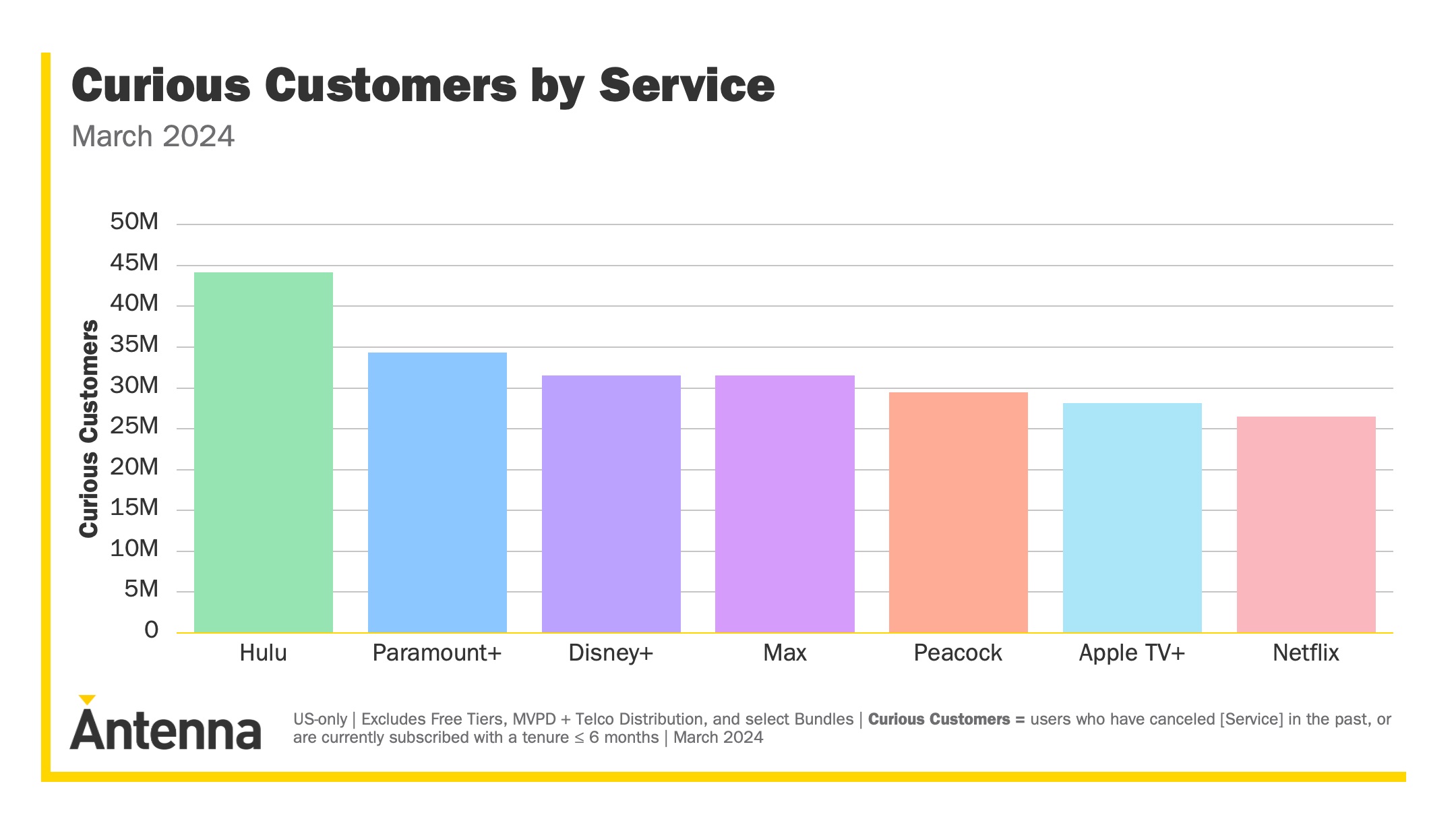 Curious Customers are defined by Antenna as individuals who have canceled a service in the past, or are currently subscribed with a tenure of six months or less